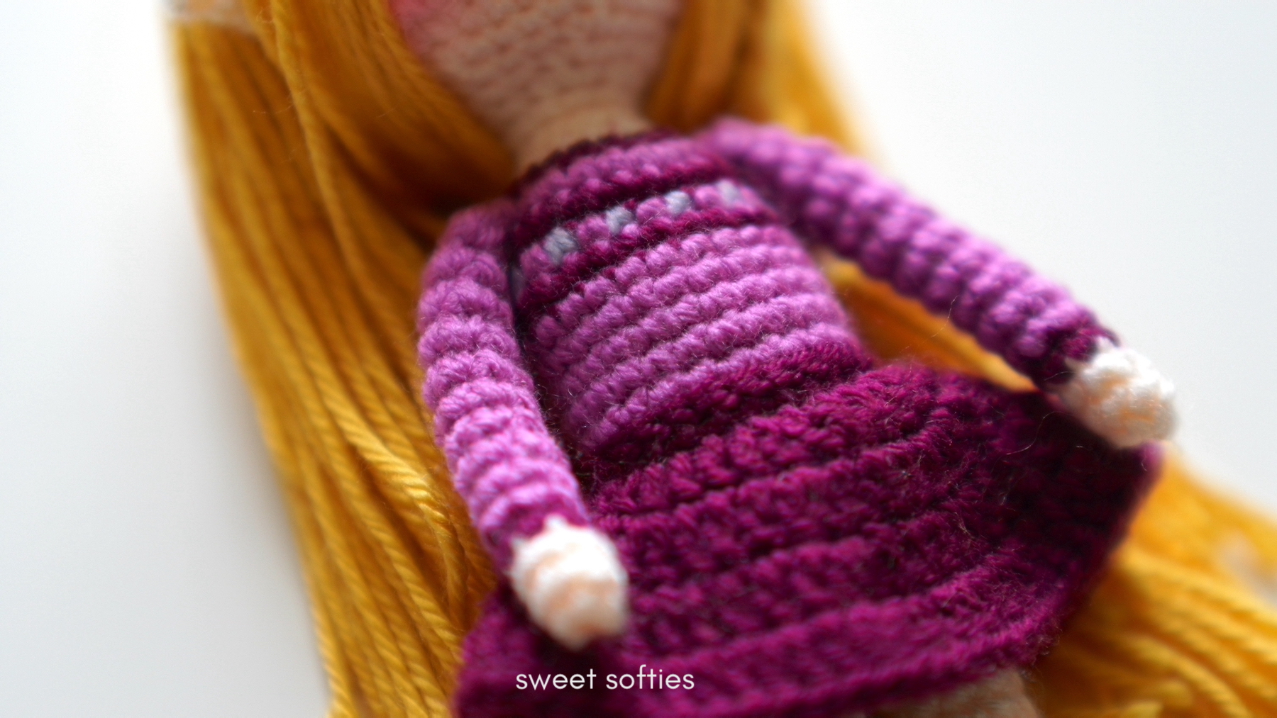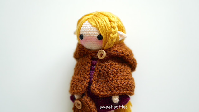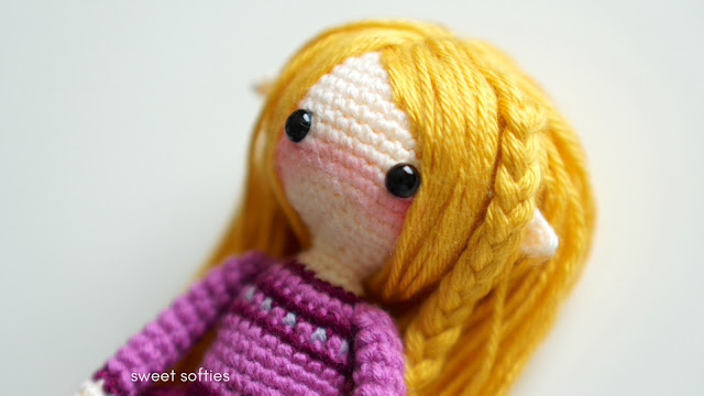 Meanwhile, I am quite happy with the one-sided braid that I added to Eliora's hair! If you'd like to learn how to attach hair to your doll in the same way, I've shared my method in my Adding Hair to Amigurumi Dolls video tutorial.
