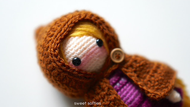 Many of my recent amigurumi projects have been small, quick-to-work-up projects, like the tiny Bedtime Babies. It's been a while since I've had the pleasure of designing a more complex doll, and I'm happy with how she turned out!