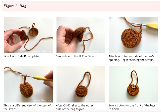 Eliora's circle crossbody bag pattern will be shared for free on this blog page! Scroll down to not only view the pattern instructions, but also the pattern info, materials list, and stitches used for the entire Eliora doll.